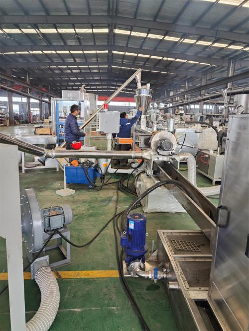 11. 水溫一般應(yīng)在 50-60℃,低了容易斷條,超出容易粘連,初開機(jī)時(shí)最好加一半熱水;如沒有條件,切粒時(shí)可人工向塑料造粒切粒機(jī)內(nèi)輸送一段時(shí)間,等水溫升高后再自動(dòng)切粒,以免斷條;水溫超過(guò) 60℃后,需向內(nèi)循環(huán)加入冷水以保持溫度。